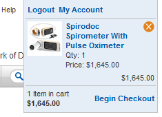 The left-hand menu is also a reminder. If you’re picking up a brand newspirometer, you might need somePFT filtersandnose clipsto go with it. (At the time of this writing, we’re still giving away some PFT filters and calibration syringes with every spirometer.) Or you might need some additional HME filters withbreathing circuits.